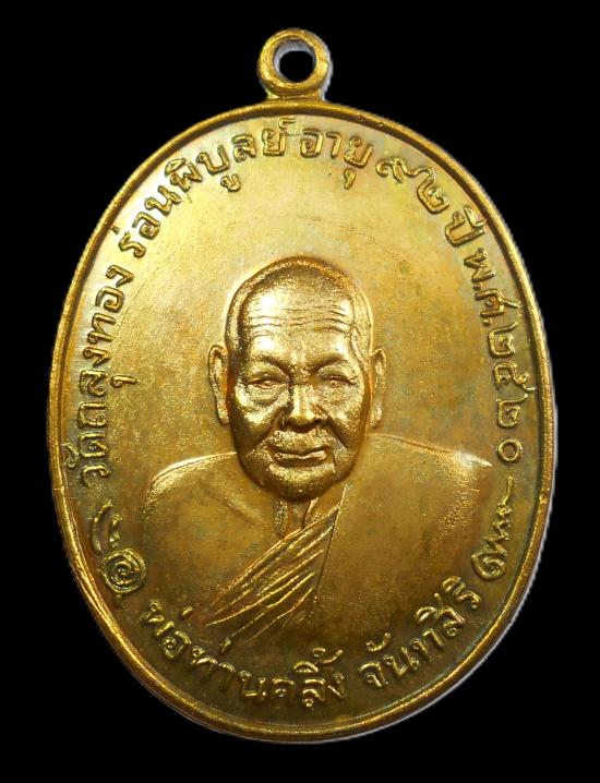 *เคาะเดียวครับ* เหรียญพ่อท่านคลิ้ง วัดถลุงทอง รุ่นโกหว่า ปี 2520 เนื้อโลหะผสม ผิวเหรียญออกสีทองเคลือบตามรูป พระแกะจากเลี่ยมทอง