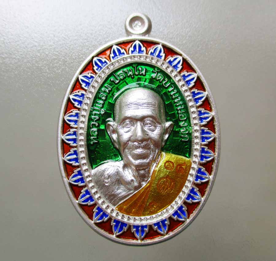 เหรียญหลวงปู่แสน ปสนฺโน วัดหนองจิก วัดบ้านหนองจิก จ.ศรีสะเกษ รุ่น มหาลาภ 111 ปี พ.ศ.2561 เนื้อเงินลงยา ตอกโค๊ต 6 โค๊ต ตอกเลข สภาพเหรียญศิลป์สวยสมบูรณ์