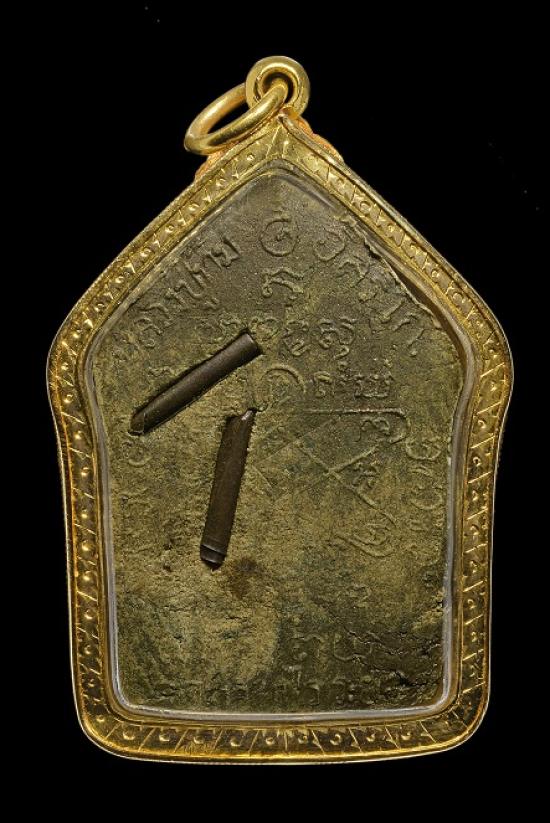 พระขุนแผนผงพรายกุมาร พิมพ์ใหญ่ บล๊อกลองพิมพ์ (บล๊อกหินมีดโกน ) ด้านหลังฝังตะกรุดสาริกาคู่ หลวงปู่ทิม วัดละหารไร่