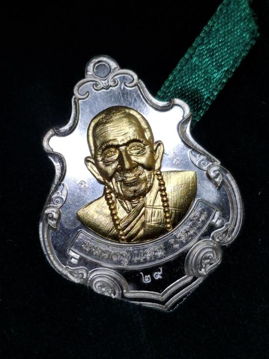 เหรียญปาดตาล หลวงปู่แสน วัดหนองจิก รุ่นเศรษฐีแสนล้าน เนื้อเงินหน้ากากทองคำ เลข 29 ปี2560