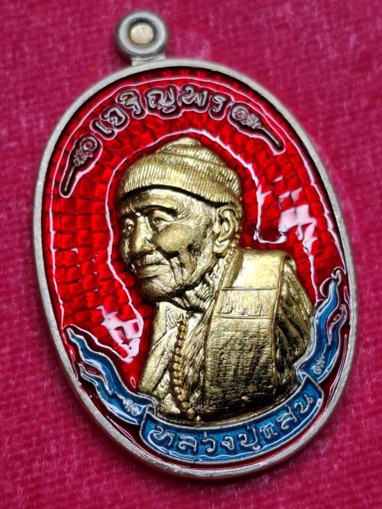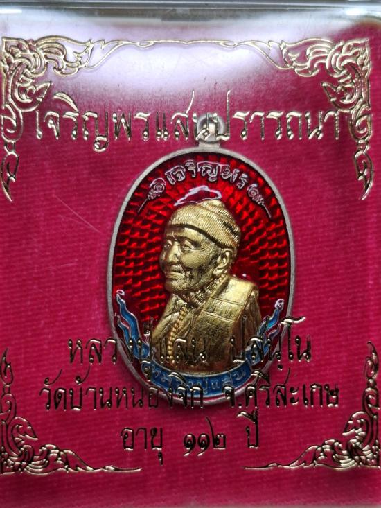 เหรียญเจริญพรแสนปรารถนา หลวงปู่แสน ปสนฺโน วัดบ้านหนองจิก จ.ศรีสะเกษ เนื้อเงินลงยาหน้ากากทองคำ เลข282 ปี 2562