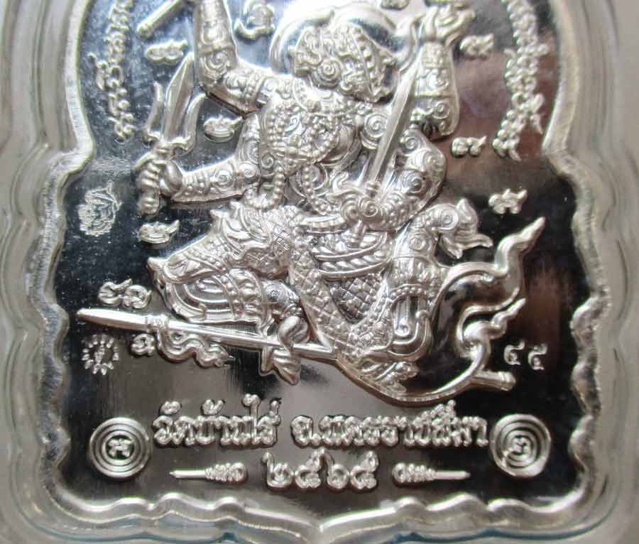 เหรียญนั่งพาน รุ่น ทองชนะมาร หลวงพ่อทอง วัดบ้านไร่ จ.นครราชสีมา พ.ศ.2565 เนื้อเงินลงยา 4 สี ตอก 2 โค๊ต ตอกเลข เลี่ยมกันน้ำพร้อม