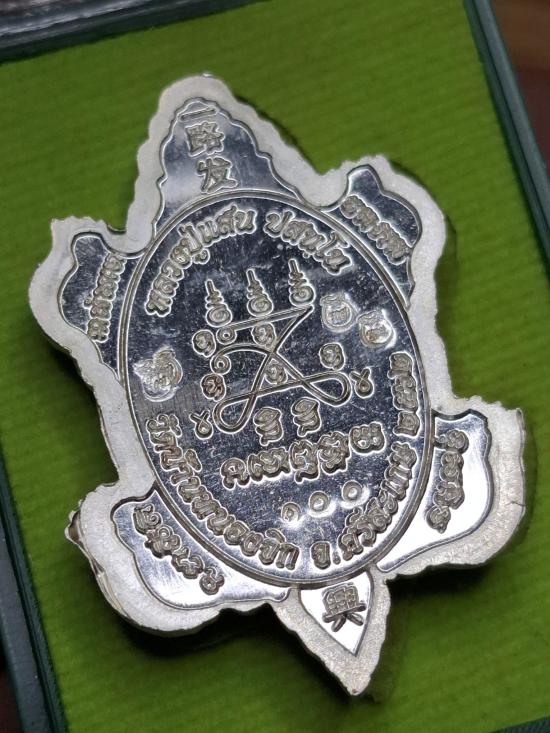 เหรียญเต่ามังกรโคตรเศรษฐี หลวงปู่เเสน วัดบ้านหนองจิก ศรีษะเกษ ปี 2562 เนื้อเงินลงยา เลข 100 น้ำหนัก 22.79 กรัม
