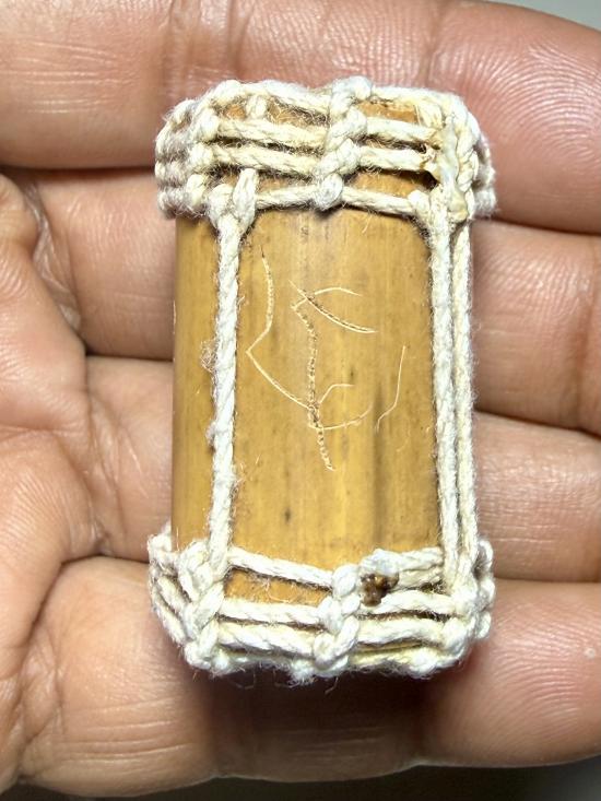 ตะกรุดไม้ ถักเชือกมีรอยจาร ไม่ทราบที่ครับ