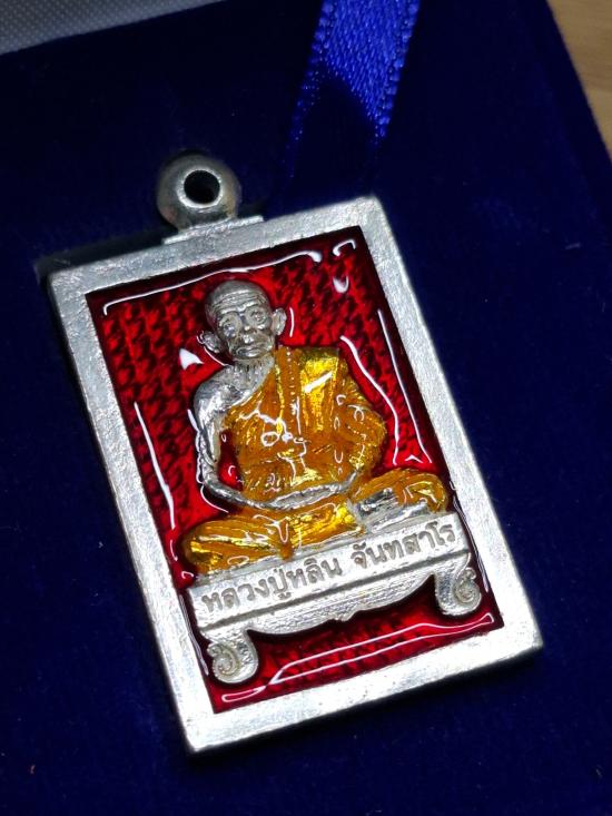 เหรียญหล่อนั่งตั่ง รุ่นแรก หลวงปู่หลิน. จันทสาโร สำนักสงฆ์บ่อศิลาหงส์ทอง อ.เมือง จ.มุกดาหาร พ.ศ.2561 เนื้อเงินลงยาแดง เลข 51 น้ำหนัก 20.74 กร้ม