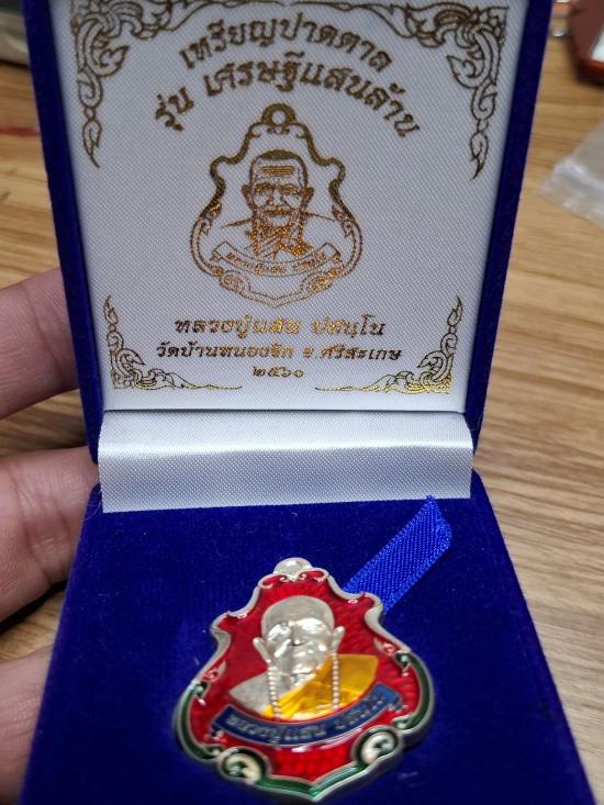 เหรียญ ปาดตาล เศรษฐีแสนล้าน หลวงปู่แสน วัดบ้านหนองจิก จ.ศรีสะเกษ ปี 2560 เนื้อเงินลงยาแดง หมายเลข 7