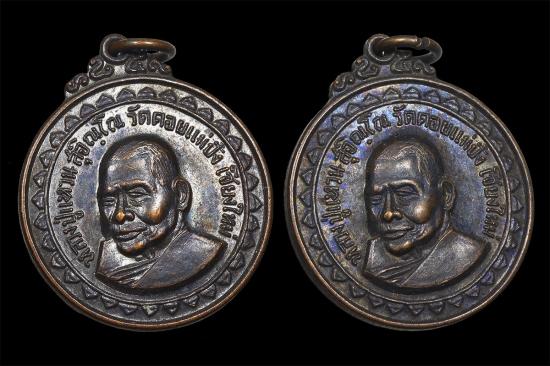 เหรียญหลวงปู่แหวน สุจิณฺโณ วัดดอยแม่ปั๋ง อ.พร้าว จ.เชียงใหม่ เขาค้อ ปี 2517 เนื้อทองแดง สวยๆ 2 เหรียญครับ