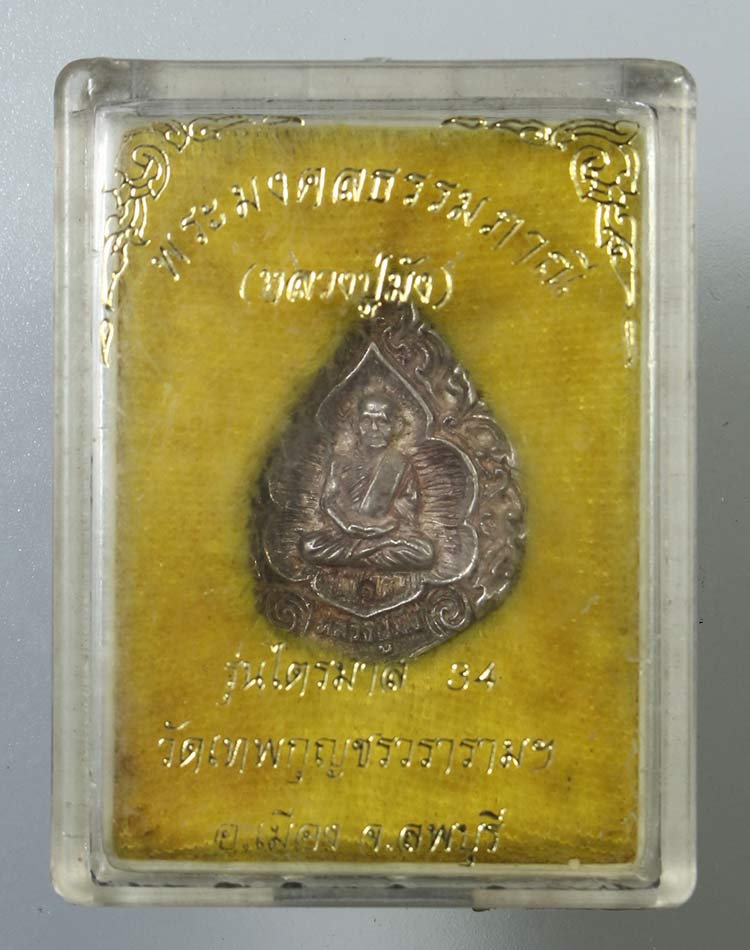 เหรียญหล่อฉลุ หลวงปู่มัง วัดเทพกุญชร ลพบุรี รุ่นมหามงคล ปี2535 เนื้อเงิน