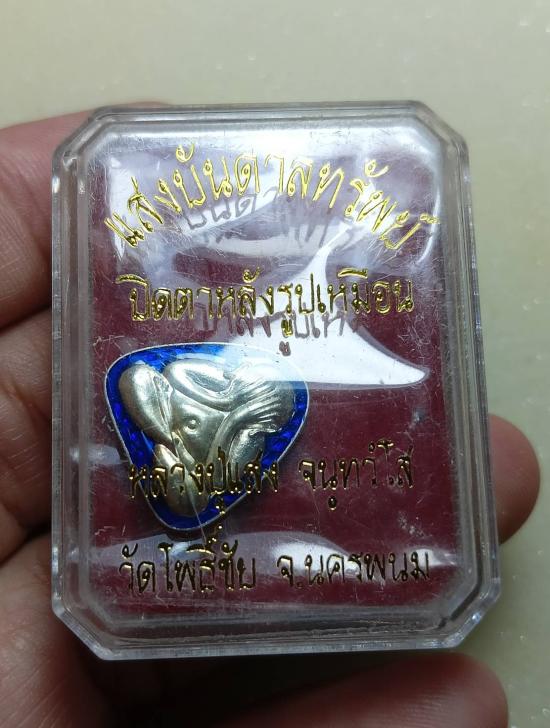 พระปิดตาหลวงพ่อแสง วัดโพธิ์ชัย เนื้อเงินลงยาน้ำเงิน
