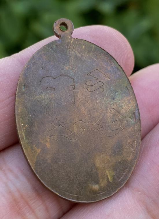เคาะเดียวแดง เหรียญที่ระลึกครบ ๕ รอบ ชินบัญชร รุ่น ลายเซ็น เนื้อนวโลหะ ตอกโค้ดหมายเลข ๙ หลังเรียบจารมือ