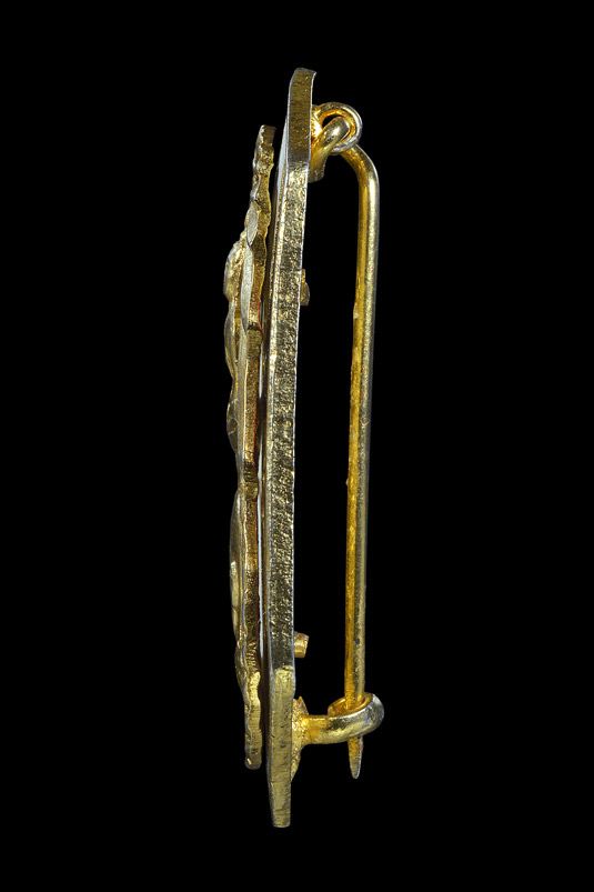 เข็มกลัดครึ่งองค์หันข้าง ( รุ่นแรก ) รุ่น เสาร์ 5 วัดสระแก้ว ( เนื้อกะไหล่ทอง ลงยาลายธงชาติ ) พ.ศ.2523 ** 8 **