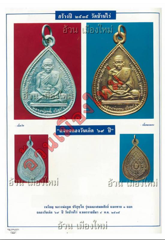 ++วัตถุประสงค์ : เนื่องในมหามงคลเฉลิมพระชนมพรรษา 5 รอบสมเด็จพระนางเจ้าสิริกิติ์ พระบรมราชินีนาถ ในวันที่ 12 สิงหาคม พ.ศ.2535 ทรงพระกรุณาโปรดเกล้า สถาปนาสมณศักดิ์พระเถระทั่วประเทศเป็นกรณีพิเศษในโอกาสนี้ หลวงพ่อคูณ ปริสุทฺโธ วัดบ้านไร่ ได้รับพระกรุณาโปรดเกล้าเลื่อนสมณศักดิ์ เป็นพระราชาคณะชั้นสามัญยก ฝ่ายวิปัสสนาธุระ ในราชทินนามที่ พระญาณวิทยาคมเถร ( สย.วิ. ) และคณะศิษย์ได้จัดทำเหรียญหลังพัดยศเพื่อ แจกทานครั้งที่ 1 ในวันครบรอบวันเกิด วันที่ 4 ตุลาคม พ.ศ .2535 ใน 2 วาระมงคล พร้อมๆกัน