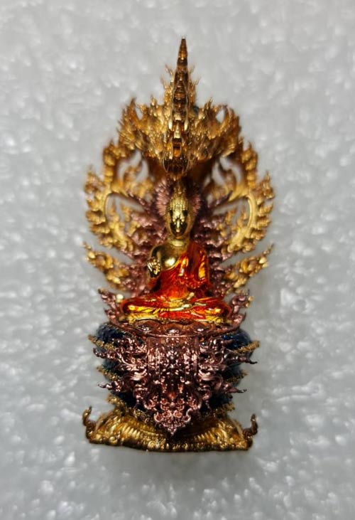 พระนาคปรก รุ่น "พรภควันต์" วัดลอน พัทลุง รายการที่ 8 องค์พระบรอนซ์ชุบทองลงยาจีวรสีส้ม ฐนนากบรอนซ์ชุบทองลงยาน้ำเงิน หมายเลข 227 พร้อมกล่องเดิมๆครับ (จอง 1,600)