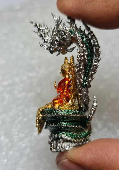 พระนาคปรก รุ่น "พรภควันต์" วัดลอน พัทลุง รายการที่ 11 องค์พระฃนวนชุบทองลงยาจีวรสีส้ม ฐานนากชนวนชุบเงินลงยาเขียว หมายเลข 122 พร้อมกล่องเดิมๆครับ (จอง 1,400)