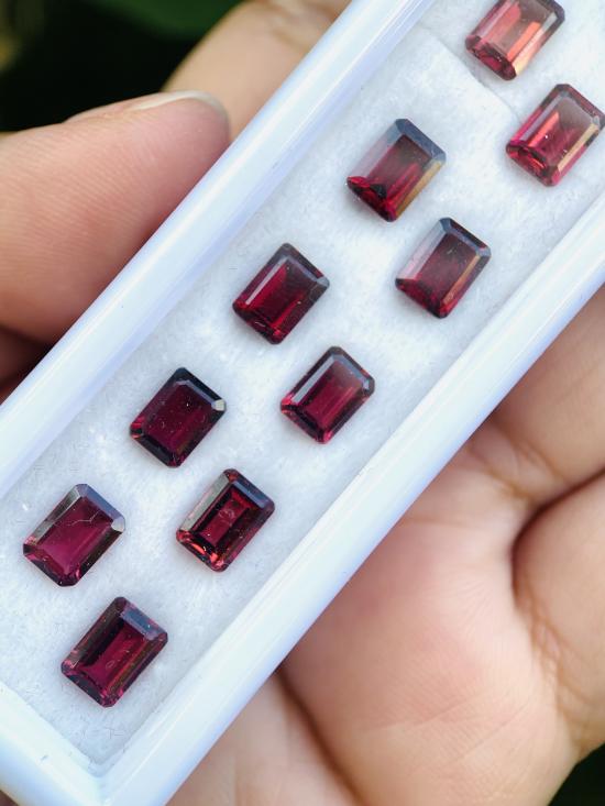 โกเมนชมพู เหลี่ยม Emerald Cut จำนวน 14 เม็ด น้ำหนักรวม 9.98 กะรัต |