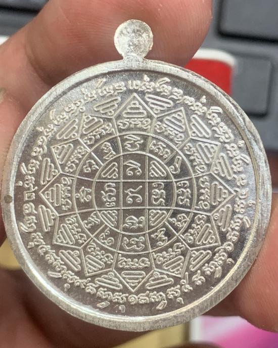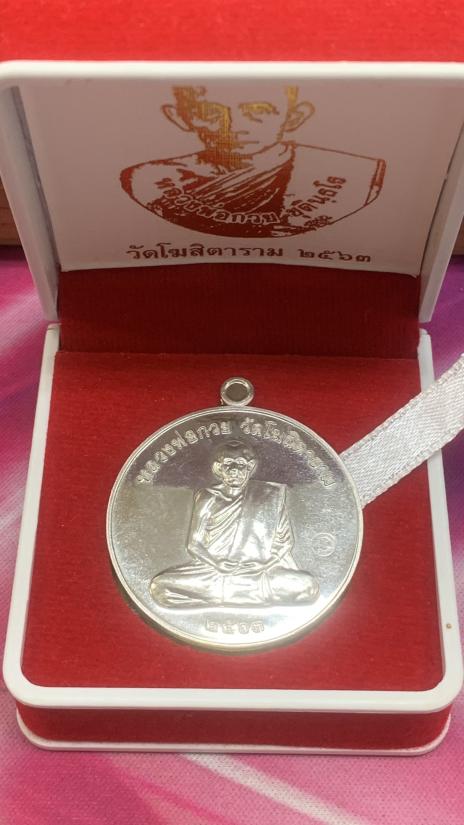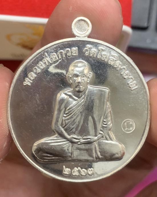 เหรียญย้อนยุครุ่นแรก หลวงพ่อกวย เนื้อเงิน รุ่นเมตตาศิษย์ วัดโฆสิตาราม จ.ชัยนาท ปี2563 พร้อมกล่องเดิม น้ำหนัก 18 กรัม