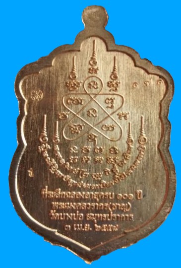 เหรียญเสมา หลวงพ่อชาญ วัดบางบ่อ รุ่นฉลองอายุ ๑๐๑ปี เนื้อทองแดงผิวไฟลงยากนกขาว