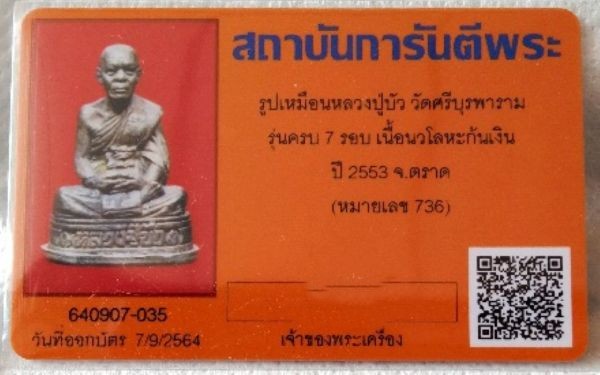 รูปหล่อหลวงปู่บัว ถามโก 7รอบ 84ปี เนื้อนวะ ก้นเงิน กล่องเดิมพร้อมบัตร