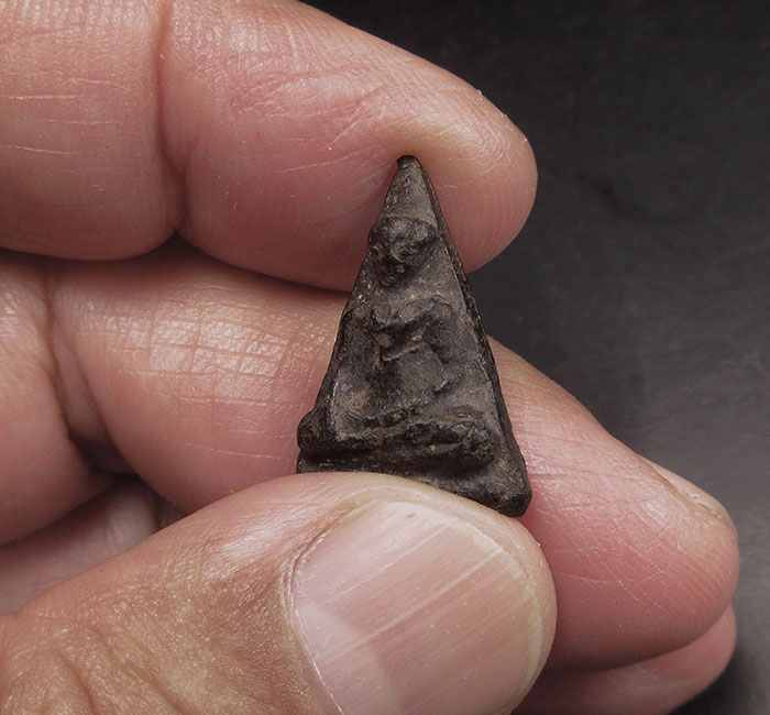 พระพิมพ์นางพญา ขนาดหน้าตักกว้างประมาณ 1.5 ซ.ม. ความสูง 2.2 ซ.ม. เนื้อดินสีดำ พระมีหน้า ตา จมูก ปากครบสมบูรณ์ ผิวเดิม ไม่ผ่านการใช้ ไม่มีรอยแตกบิ่นหรืออุดซ่อม รับประกันตามกฎ