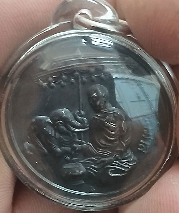 ((499))เหรียญพระพุทธเสฏฐมุนี วัดสุทัศน์ ฯ - พระองคุลิมาลโปรดช้าง เนื้อเงิน ขนาด 3 ซม.