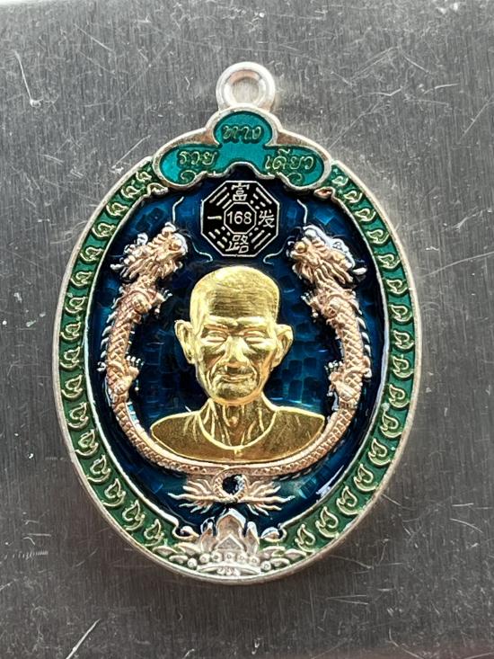 เหรียญเซียน อา แปะโรงสี รวยทางเดียว ปี 2563 พิธีเสกหลายวาระ เกจิเสกเพียบ เนื้อเงินลงยาหน้ากากทองคำ มีกล่องเดิม |