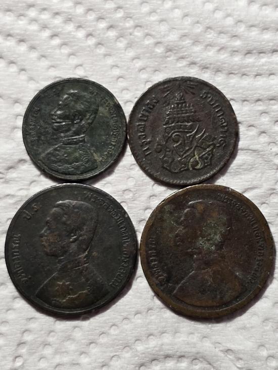 เหรียญยุคสมัยร 5 มีหัวตรง 1 เหรียญ ยกชุดเคาะเดียวแดง