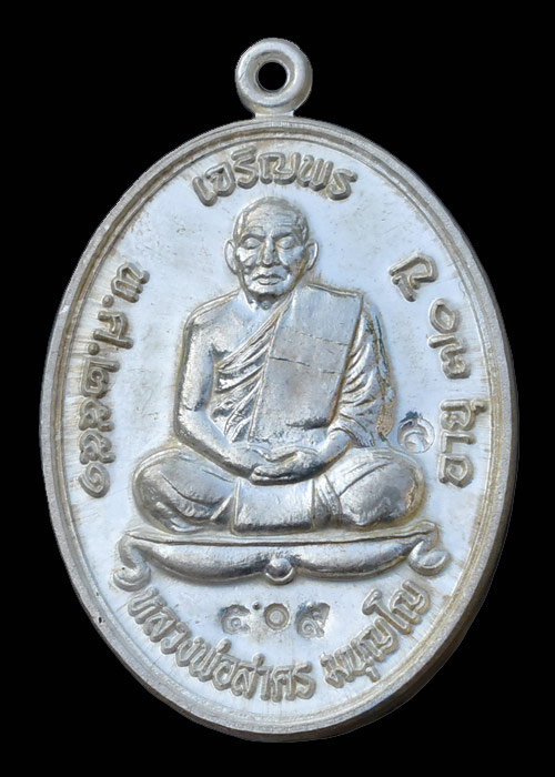 ชื่อพระเครื่อง ๑๑๑เคาะแรก 100 เหรียญเจริญพรบน เนื้อเงิน หลวงพ่อสาคร วัดหนองกรับ 2551 2. เนื้อเงิน จำนวนการสร้าง 1,199 เหรียญ เหรียญสวยงามน่าบูชา ท่านใดชอบเรีนเชิญครับผม๑๑๑