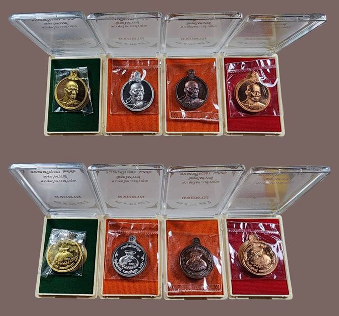 ( 4 เหรียญ )(ทองระฆังเ/นื้อตะกั่ว/ทองแดงรมดำ/ทองแดงผิวไฟ) เหรียญแจกทาน ครบ 7 รอบ 85 ปี หลวงพ่อหวล วัดพุทไธศวรรย์ อยุธยา สวยเดิมๆครับ