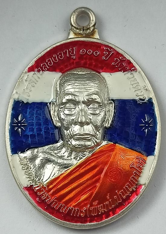 เหรียญห่วงเชื่อมหลังเต่า รุ่น"อมตะพัฒน์ปาฏิหาริย์" หลวงพ่อพัฒน์ วัดห้วยด้วน เนื้อเงินลงยาขุ้ยพื้นลายธงชาติ เบอร์ 62 พร้อมกล่องเดิมครับ (น้ำหนักเหรียญ 20.52 กรัม)