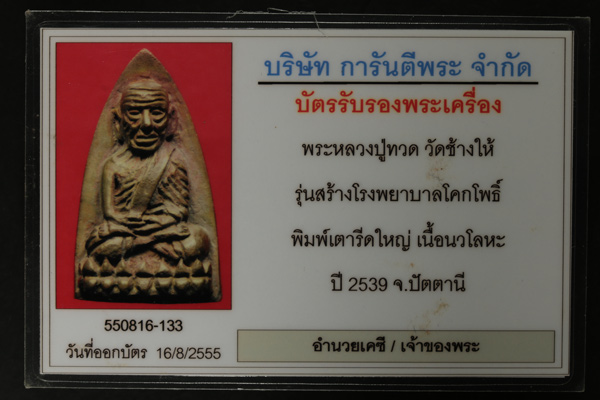 พระหลวงปู่ทวด วัดช้างให้ รุ่นสร้างโรงพยาบาลโคกโพธิ์ พิมพ์เตารีดใหญ่ เนื้อนวโลหะ ปี 2539 จ.ปัตตานี (2)