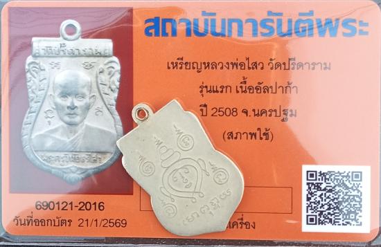 เคาะเดียวแดง+++เหรียญหลวงพ่อไสว วัดปรีดาราม รุ่นแรก เนื้ออัลปาก้า ปี 2508 จ.นครปฐม (มาพร้อมบัตรรับรองพระแท้สภาพใช้)