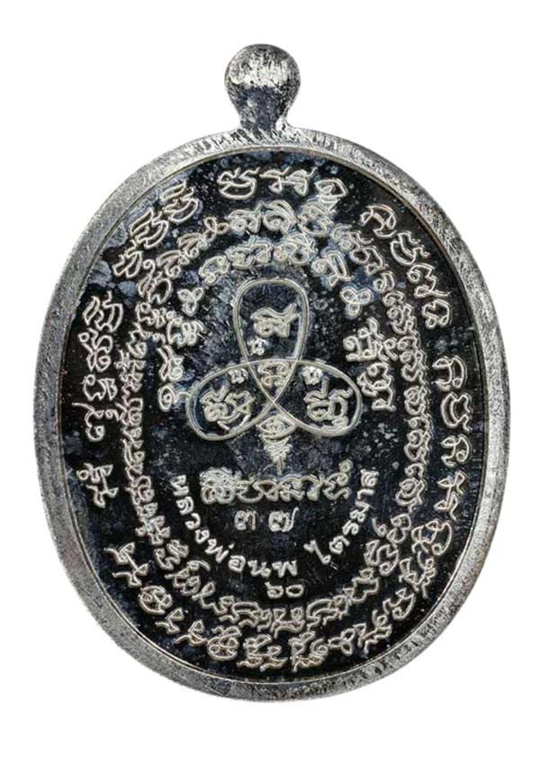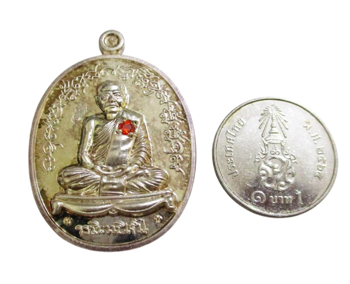 เหรียญไตรมาส 60 หลวงพ่อนพ อนิญฺชิโต วัดหนองไร่ จ.ระยอง พ.ศ.2 560 เนื้อเงิน ผิวกระจก ฝังพลอย ตอก 6 โค๊ต สภาพสวยกริ๊บๆ