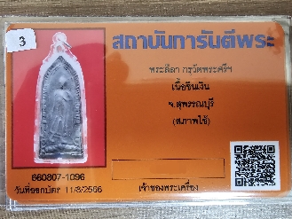 พระลีลา กรุวัดพระศรีฯ สุพรรบุรี เนื้อชินเงิน พร้อมบัตรรับรอง