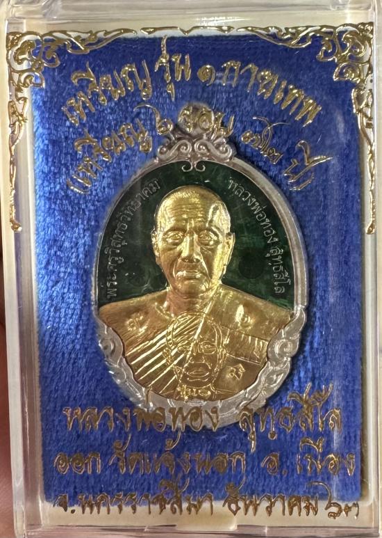 เหรียญ หลวงพ่อทอง สุทฺธสีโล รุ่น1กายเทพ เนื้อเงินลงยาสีเขียวหน้าทองคำ หมายเลข6น้ำหนักเหรียญเนื้อเงินลงยาหน้าทองคำ16.2กรัม มีกล่องครับ