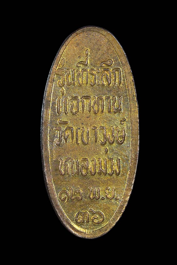 เหรียญ ( เล็ก ) รูปเหมือนหลวงพ่อคูณถือปะคำ รุ่น ที่ระลึกแจกทาน วัดเขาวงษ์หนองม่วง จ.ลพบุรี ( เนื้อโลหะผสม ) พ.ศ.2536 ( กล่องเดิม )