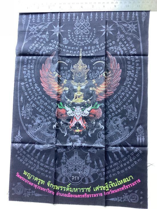 ผ้ายันต์ พญาครุฑ รุ่น เศรษฐีเงินไหลมา วัดพระศรีมหาธาตุวรมหาวิหาร จ.นครศรีธรรมราช สีดำ ขนาด A3 ขนาด 11.5 นิ้ว x 16.5 นิ้ว |