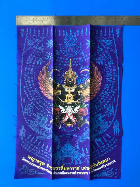 เคาะเดียวแดง 100 ผ้ายันต์ พญาครุฑ รุ่น เศรษฐีเงินไหลมา วัดพระศรีมหาธาตุวรมหาวิหาร จ.นครศรีธรรมราช สีน้ำเงิน ขนาด A3 ขนาด 11.5 นิ้ว x 16.5 นิ้ว |