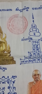 ผ้ายันต์ สมเด็จองค์ปฐม หลวงพ่อปาน-หลวงพ่อฤาษีลิงดำ วัดศาลพันท้ายนรสิงห์ ปี42 |
