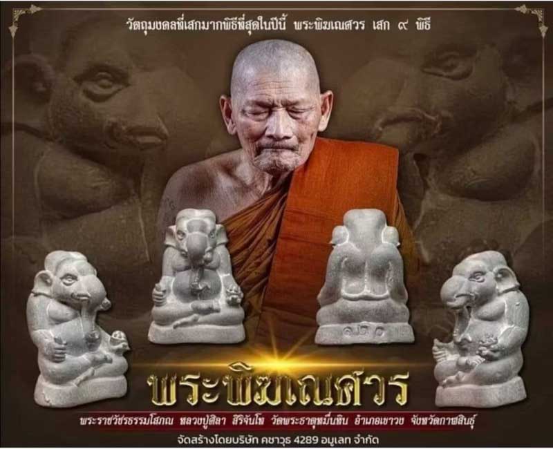พระพิฆเนศวรสามจักรวาล เนื้อชนวนสำริดศักดิ์สิทธิ์ เสก 9 วาระ พิธีเหนือดวง หลวงปู่มหาศิลา สิริจันโท วัดพระธาตุหมื่นหิน จ.กาฬสินธุ์