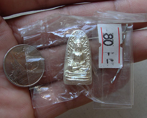 พระรอดเนื้อเงิน รุ่นปิดทอง ปี51 วัดพระธาตุหริภุญชัย จ.ลำพูน หมายเลข 80 สร้างน้อย กล่องไม้เดิมอย่างดี สภาพสวยครับ