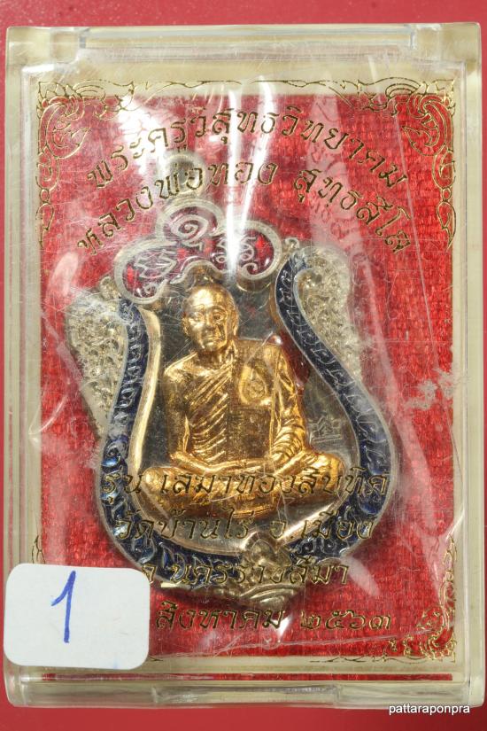 เหรียญหลวงพ่อทอง รุ่นทองสิบทิศ ปี 2563 เนื้ออัลปาก้าหน้ากทองลงยาขอบ หมายเลข 1 เลขสวยๆ |