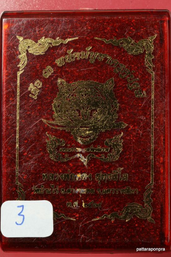 เหรียญเสมาหลวงพ่อทอง เสือคาบดาบ รุ่น3 ปี 2564 เนื้อทองฝาบาตรลงยา หมายเลข 3
