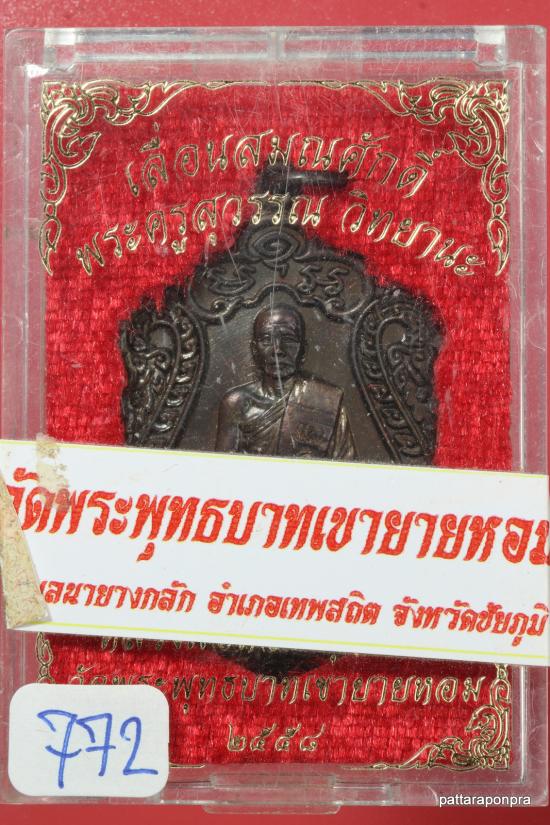 เหรียญเสมาหลวงพ่อทอง รุ่นเลื่อนสมณศักดิ์ ปี 2558 เนื้อทองแดงรมดำ หมายเลข 772