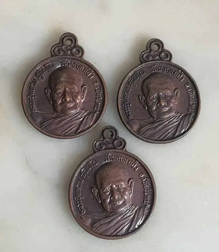 วัดใจ เคาะเดียว เหรียญหลวงปู่แหวน สุจิณโณ วัดดอยแม่ปั๋ง ปี 2521 รุ่นร่มโพธิ์ เนื้อทองแดง สภาพสวย 3เหรียญ
