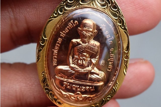 เหรียญหลวงพ่อรวย รุ่นชนะจน เลี่ยมทองเปอร์เซ็นต์สูง หนัก 2.40 กรัม