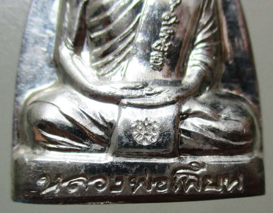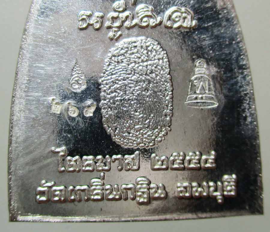 เหรียญพิมพ์เตารีด หลวงพ่อเพี้ยน วัดเกริ่นกฐิน จ.ลพบุรี รุ่นเมตาบารมี ไตรมาส 55 พ.ศ.2555 เนื้อเงิน ตอก 3 โค๊ต ตอกเลข พร้อมกล่อง !!