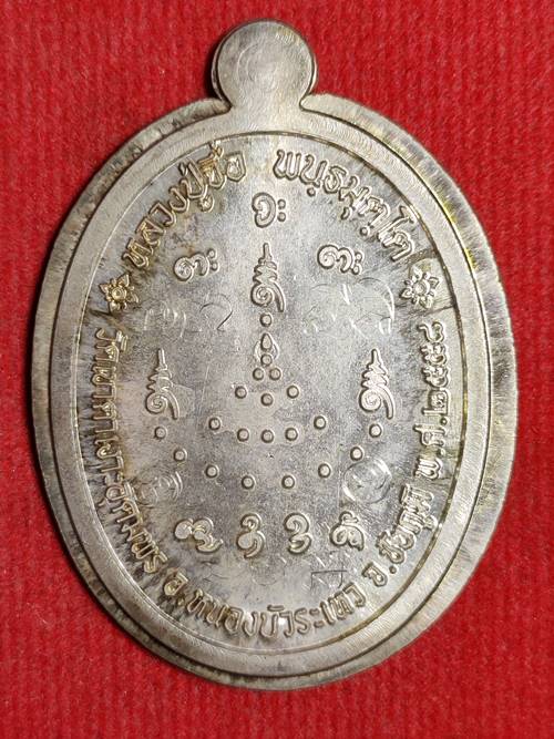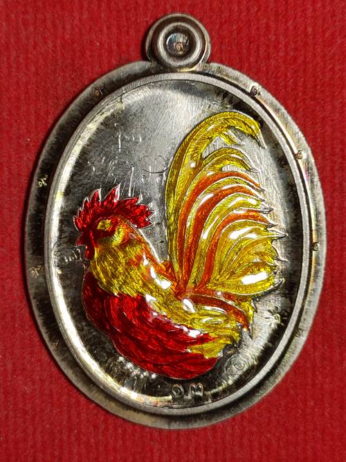 รุ่นแรกไก่หลวงปู่จื่อ พันธมุตโต รุ่น มหาลาภโภคทรัพย์ ออกวัดเขาตาเงาะอุดมพร จ.ชัยภูมิ ปี 58 เนื้อ เงินลงยาพิมพ์กรรมการไม่ตัดปีกหลังยันต์ หมายเลข 13 ตอกโค๊ตเลข 9 เก้าตัว เคาะเดียวแดง