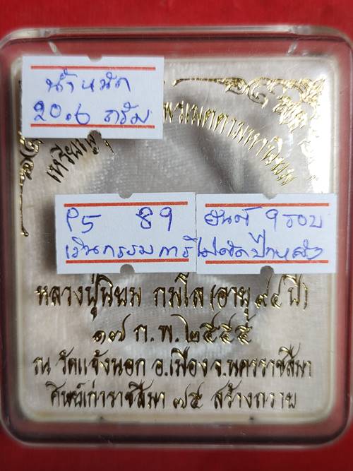 เหรียญหลวงปู่นิยม กมโล รุ่น เจริญพรเมตตามหานิยม ออกวัดแจ้งนอก ปี 2555 เนื้อ เงินพิมพ์กรรมการไม่ตัดปีกหลังยันต์ พิเศษ ตอกโค๊ต 9 รอบ หมายเลข 89 สภาพสวย เคาะเดียวแดง |