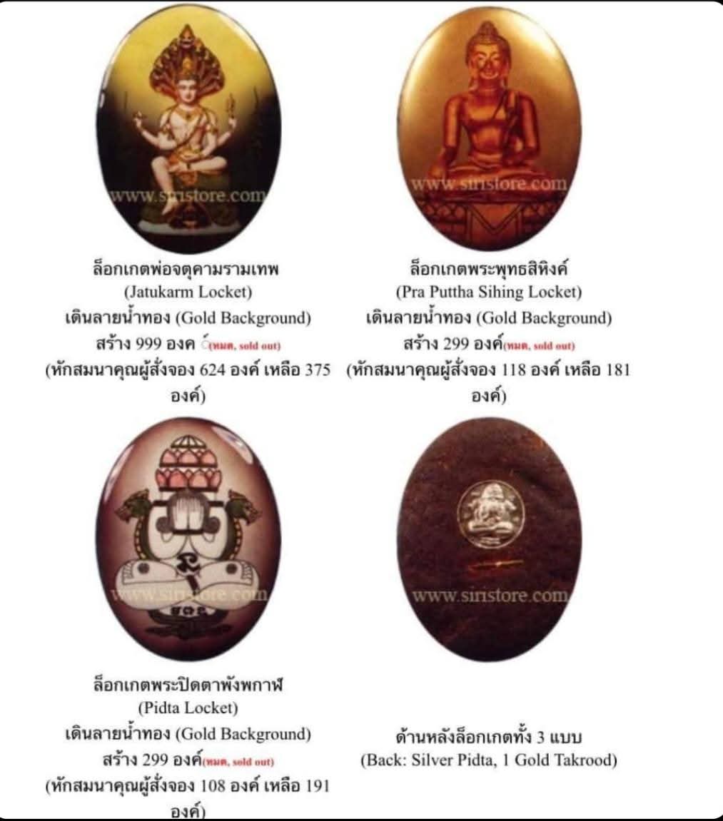 ล็อคเก็ตองค์พ่อจตุคามรามเทพ รุ่นอุดมโภคทรัพย์ ด้านหลังฝังผงยาจินดามณีสูตรวัดกลางบางแก้ว ฝังตะกรุดทองคำและเหรียญปิดตาเนื้อเงินจิ๋ว รุ่นนี้สร้าง 999 องค์ ด้านหลังฝังผงยาจินดามณีสูตรวัดกลางบางแก้ว ประกอ