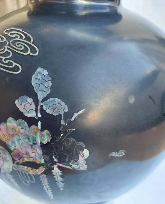 แจกันใบใหญ่ไฟเบอร์กลาส สีดำฝังเปลือกหอยมุกสไตล์เกาหลี